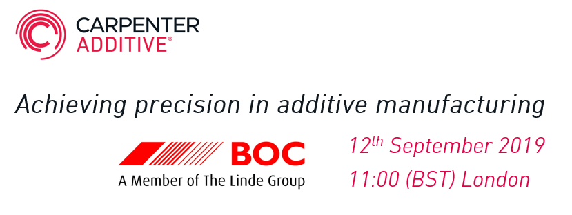 In this webinar, gases specialist BOC, and additive manufacturing powder specialist, Carpenter Additive, will discuss the role that atmospherics can play in delivering precision and consistency in additive manufacturing, and the micro-processes within the AM value chain in which greater control can be introduced.